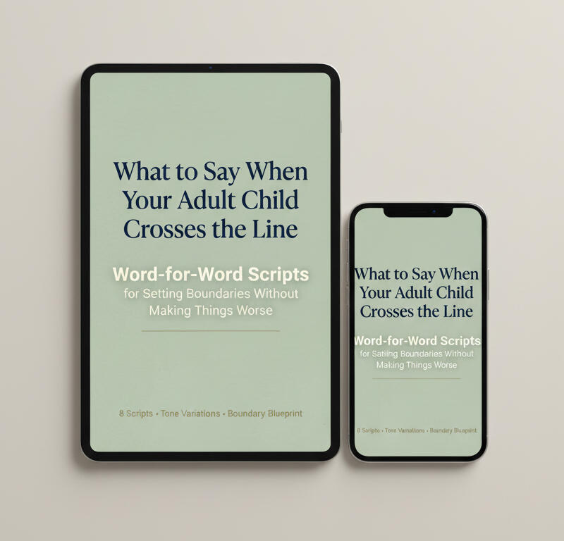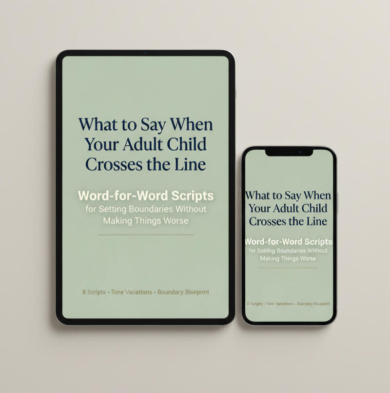 I created this because I kept seeing the same sentence from parents over and over: “I freeze… and then I say the wrong thing.”So I did what most people don’t have time (or emotional energy) to do in the middle of family stress: I researched hundreds of real parent stories, studied what boundary and communication experts recommend, and distilled it into word-for-word scripts you can actually use in the moment.This guide won’t “fix” your adult child — but it will give you something you may not have had before: calm, specific words that protect your peace without pouring gasoline on the fire.