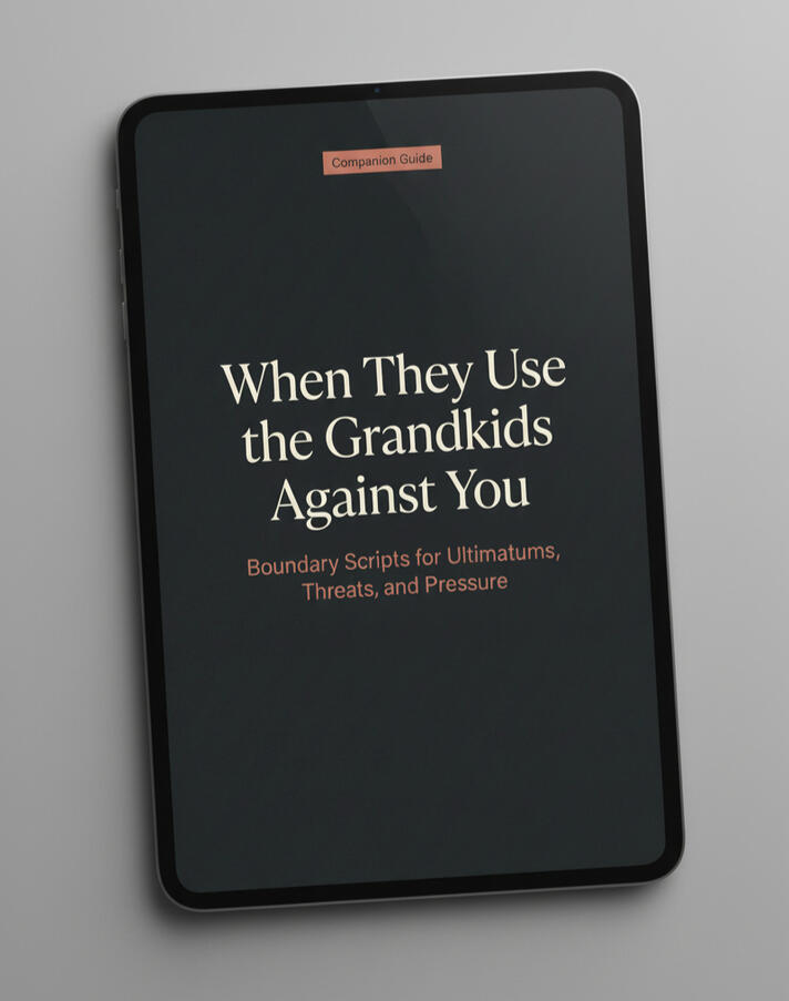 ■ Firm: "I'm willing to talk about the past respectfully. If we can't, I'm ending this conversation."If they push back: "I made mistakes. I won't accept a label designed to shame me."SCRIPT 3: They threaten to keep the grandkids away■ Warm: "I love you and those kids. I'm not making decisions under threats."